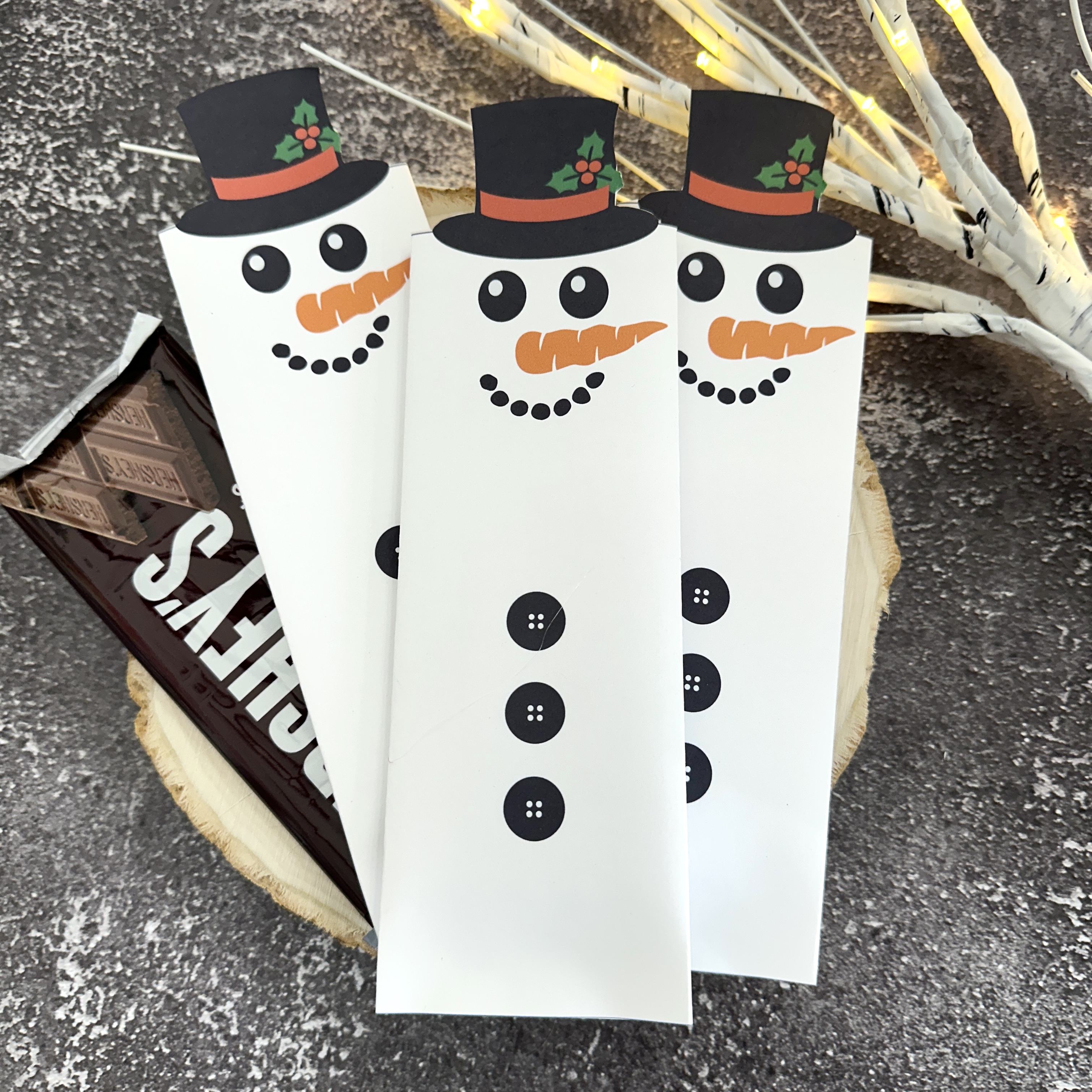 Aren't these snowmen adorable!? And YUMMY as they are hiding chocolate bars inside! These are another easy print - fold - cut - glue project. See the video tutorial HERE